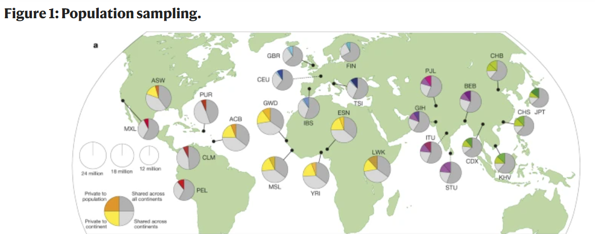 1000ゲノムプロジェクトフェーズ3の分析対象集団(韓国人は含まれない)