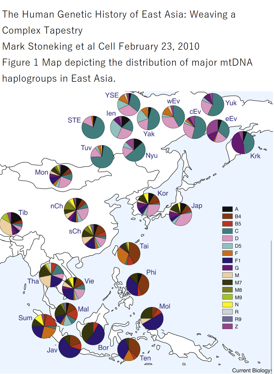 母系祖先を辿り得るミトコンドリアDNAに関しては、朝鮮人の場合、特徴的な分布を示してはいません
