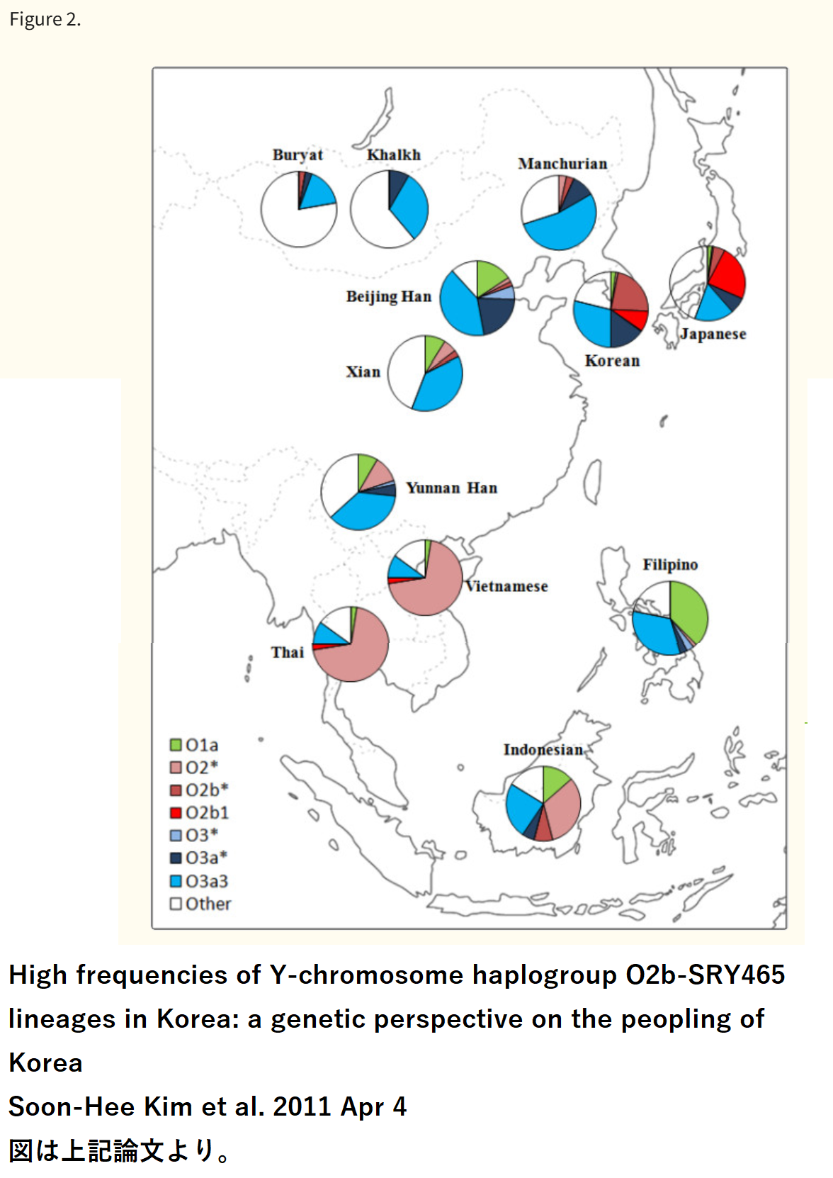 Y染色体遺伝子から見た日本人男性と朝鮮人・中国人男性との差